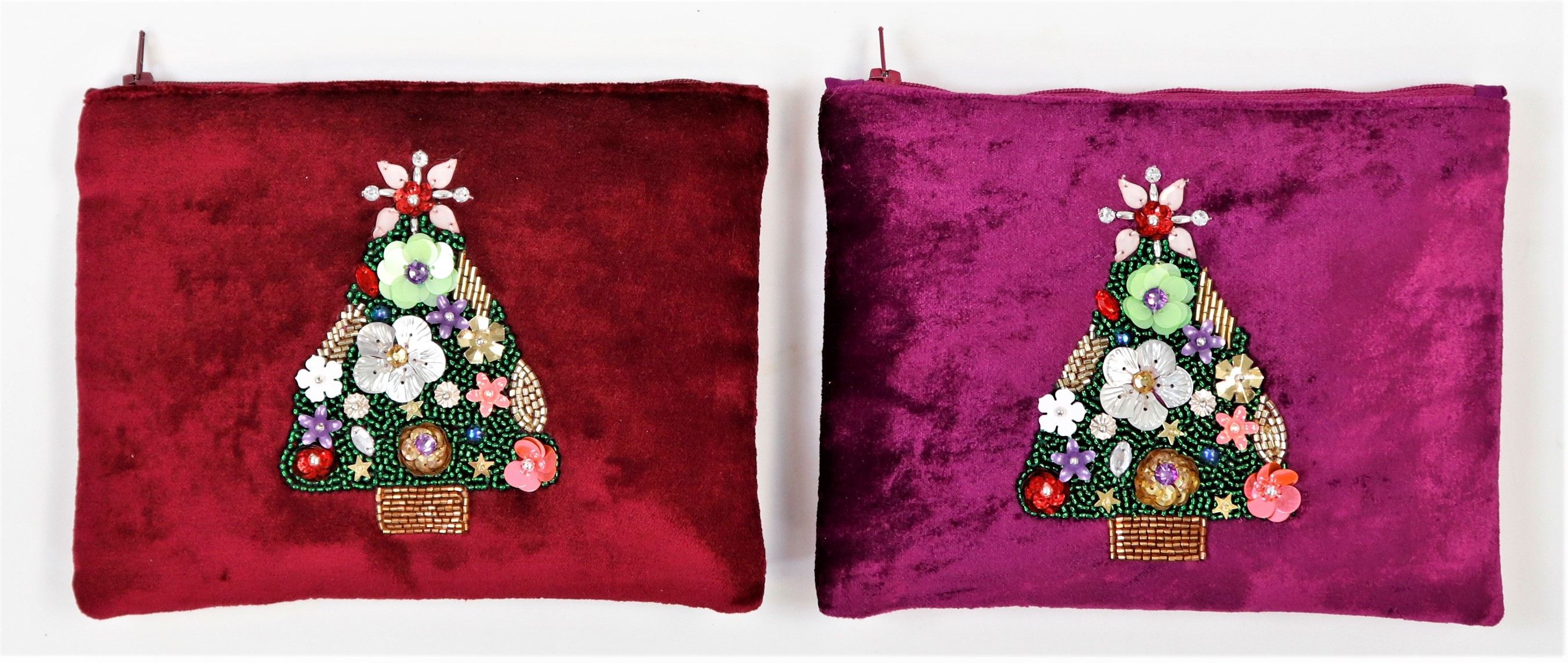 Unsere SAMTBEUTEL "CHRISTMAS TREE" kommen als 2-teiliges Set, gefertigt aus Samt Baumwolle in den aufmerksamkeitsstarken Weihnachtsfarben rot und pink. Jeder Beutel ist mit einem entzückenden Weihnachtsbaum-Muster und strahlenden Perlen verziert, was zusätzliche visuelle Attraktivität und einen Hauch von Eleganz bietet. Mit einer Größe von 19 x 15 cm sind sie perfekt für das Verpacken von kleinen Präsenten oder einfach als dekoratives Highlight in Ihrem Geschäft.