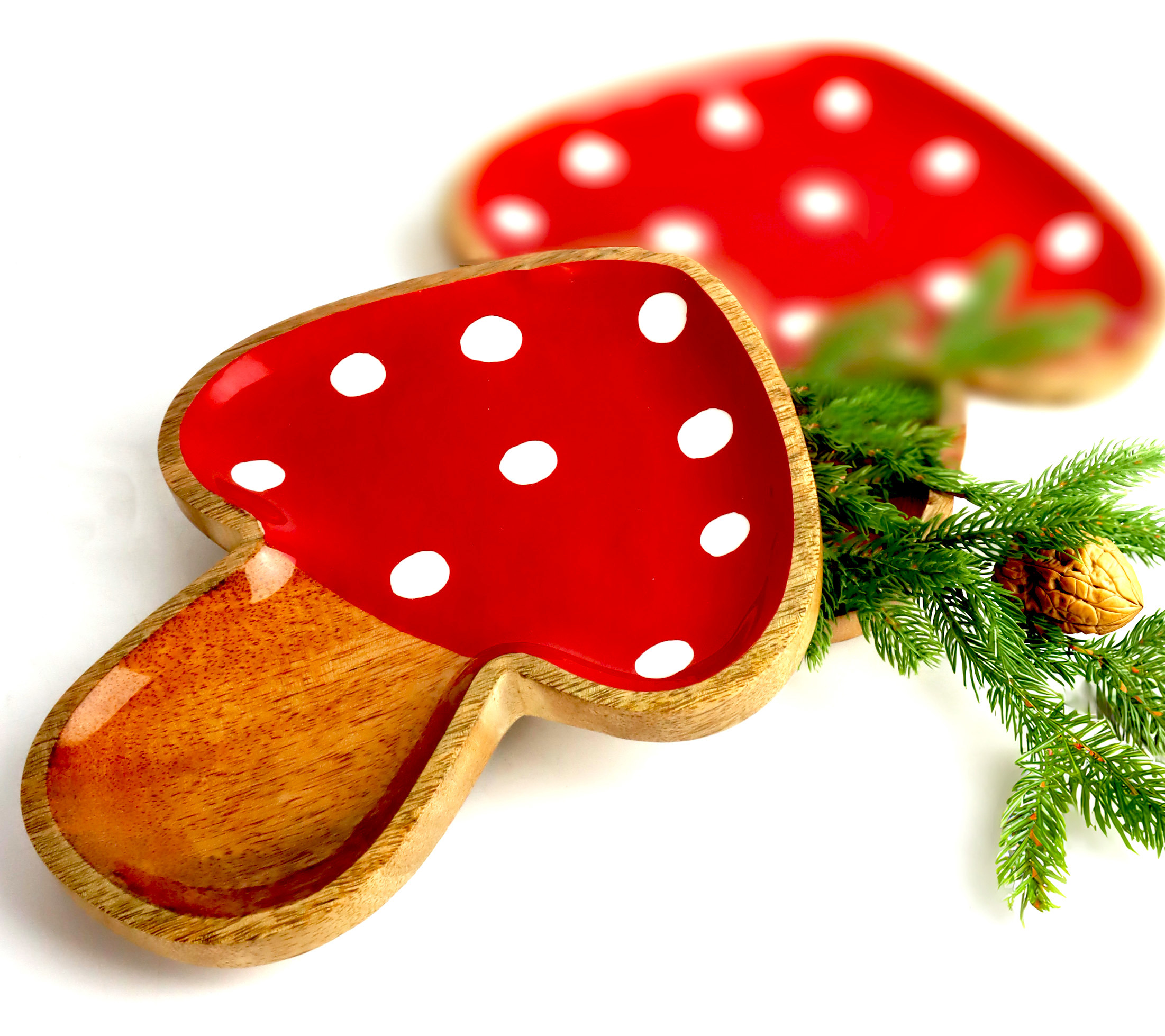 Die "Glückspilz"-Tablettschalen sind von dem ikonischen Design des Fliegenpilzes inspiriert, welches ideal zur festlichen Stimmung passt und Assoziationen von Glück und Freude hervorruft. Diese zauberhaften Tablettschalen sind perfekt dafür geeignet, Ihre diesjährige Weihnachtsdekoration herausragend in Szene zu setzen und bieten dabei Platz für Kekse, festliche Accessoires oder Dekokränze. Aus hochwertigen Materialien gefertigt, garantiert dieses Set eine langlebige Nutzung und ist vielseitig einsetzbar.