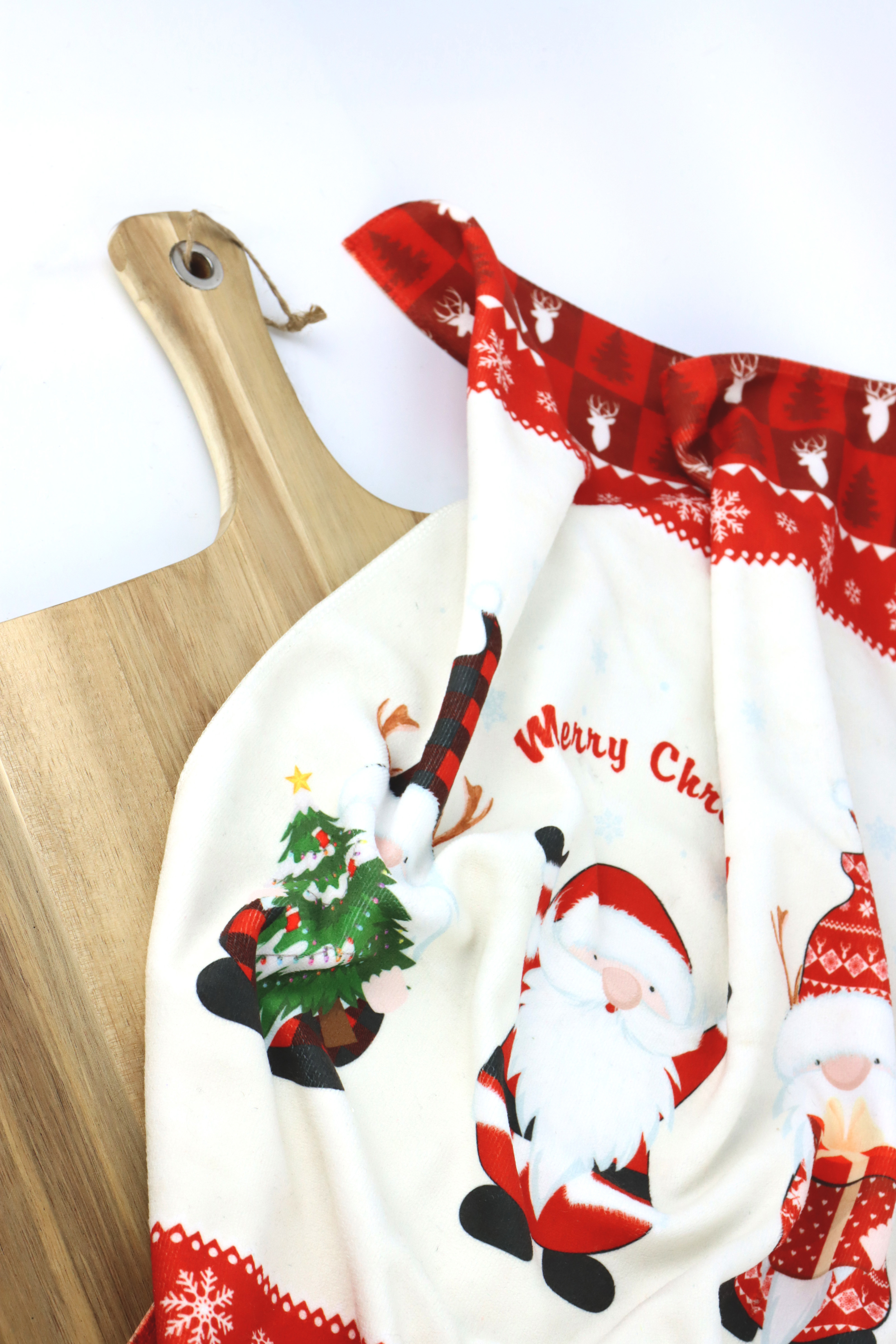 Begleitet wird das Holzbrett von einem festlichen Küchentuch, das mit seinem weihnachtlichen Design und den Abmessungen von 40x60 cm nicht nur praktisch, sondern auch ein optisches Highlight ist. Gefertigt aus hochwertiger Baumwolle, verspricht es Langlebigkeit und Komfort beim Trocknen von Geschirr oder beim Aufwischen kleiner Missgeschicke, die beim Kochen schnell passieren können. Das Design des Küchentuchs passt perfekt in die Weihnachtszeit und fügt sich harmonisch in saisonale Dekorationen ein.