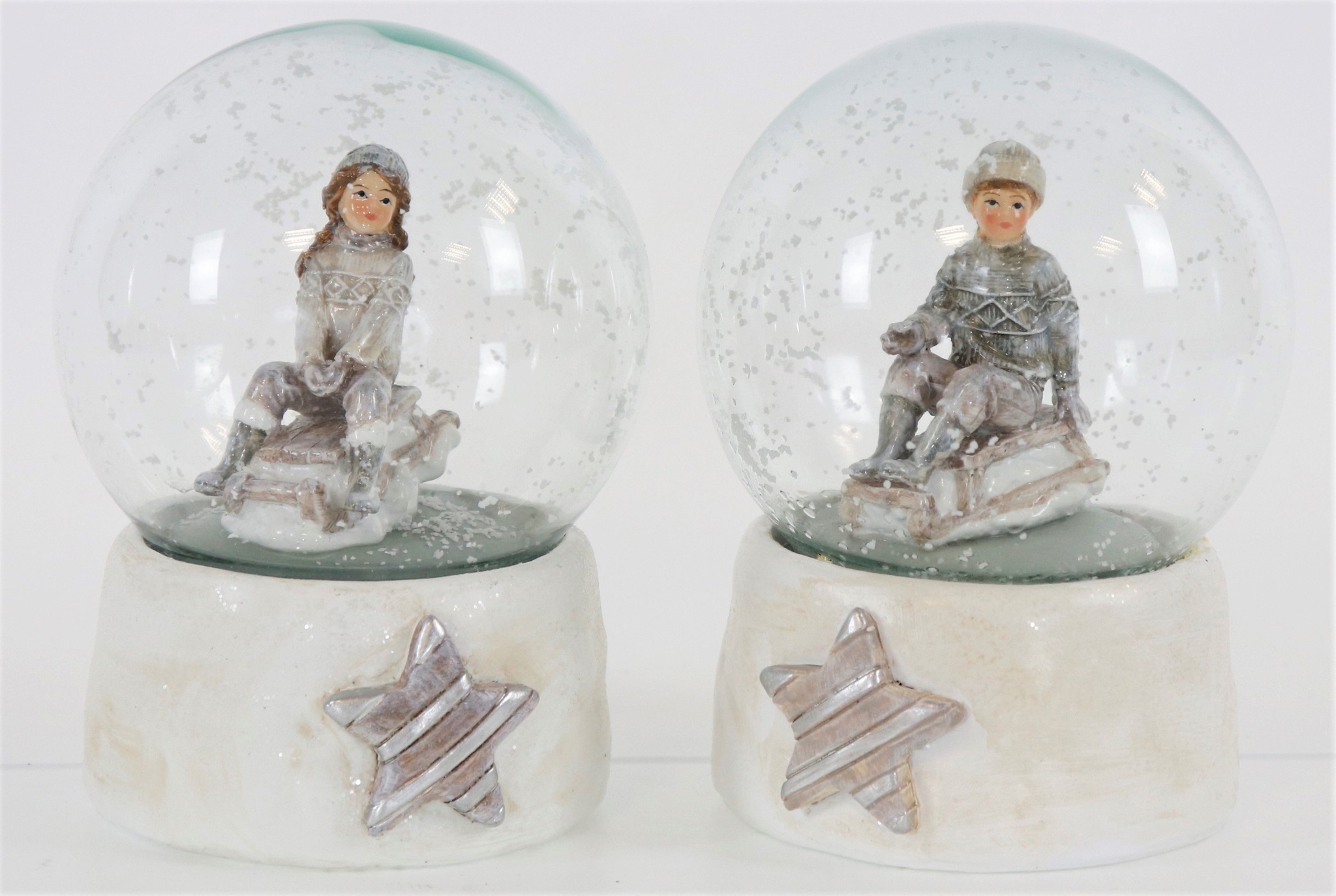 Unser Set aus zwei Schneekugeln „Winterkinder“ ist das idyllische Bild einer Winterlandschaft – ein Moment der Ruhe eingefangen im Zauber einer Schneekugel. Hergestellt aus hochwertigem Polyresin, sind die Schneekugeln 13 cm groß und eine sorgfältig gearbeitete Darstellung von Kindern, die sich in ihrer winterlichen Welt vergnügen. Versetzt Sie und Ihre Kunden in eine Stimmung der Freude und Geborgenheit, während draußen die kalten Winterwinde wehen.