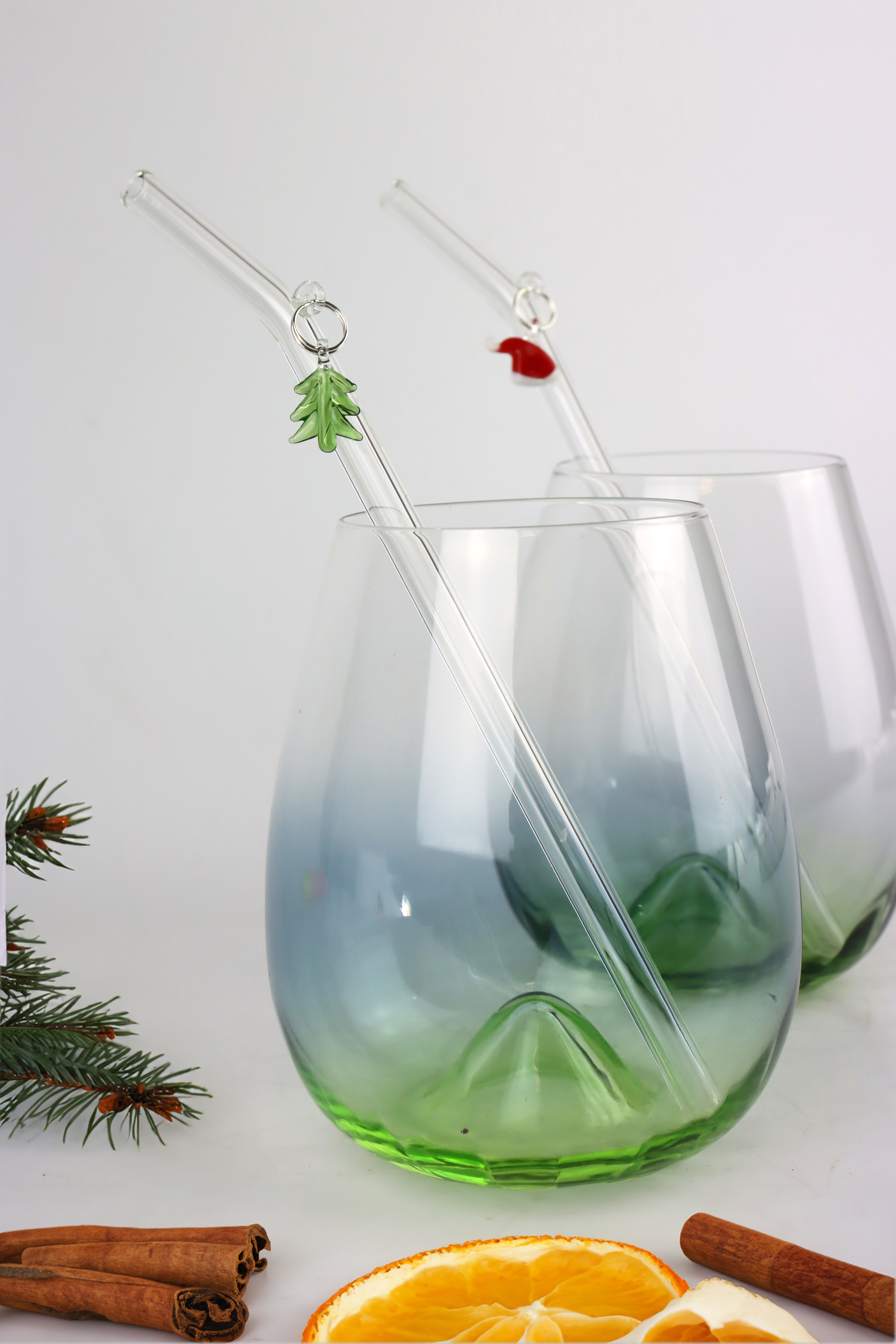 **Produktbeschreibung: Glasstrohhalme "X-Mas" – Set aus 6 Weihnachtsstrohhalmen**