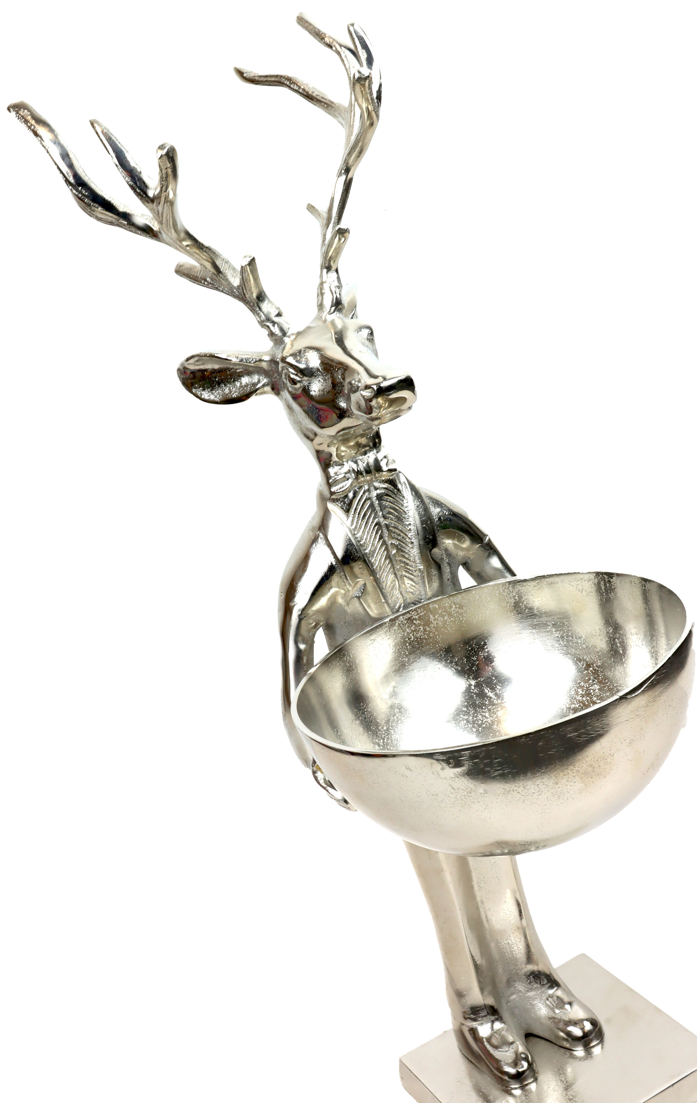 Der Butler "Hirsch" besticht durch seine detailreiche Verarbeitung und die strahlende Oberfläche, die jedem Raum einen Hauch von Luxus verleiht. In der stilvollen Schüssel kann er dekorative Objekte, Süßigkeiten oder andere kleine Waren präsentieren – eine ideale Möglichkeit, um in Ihrem Einzelhandelsgeschäft Produkte ansprechend in Szene zu setzen und Ihre Kunden zu inspirieren.
