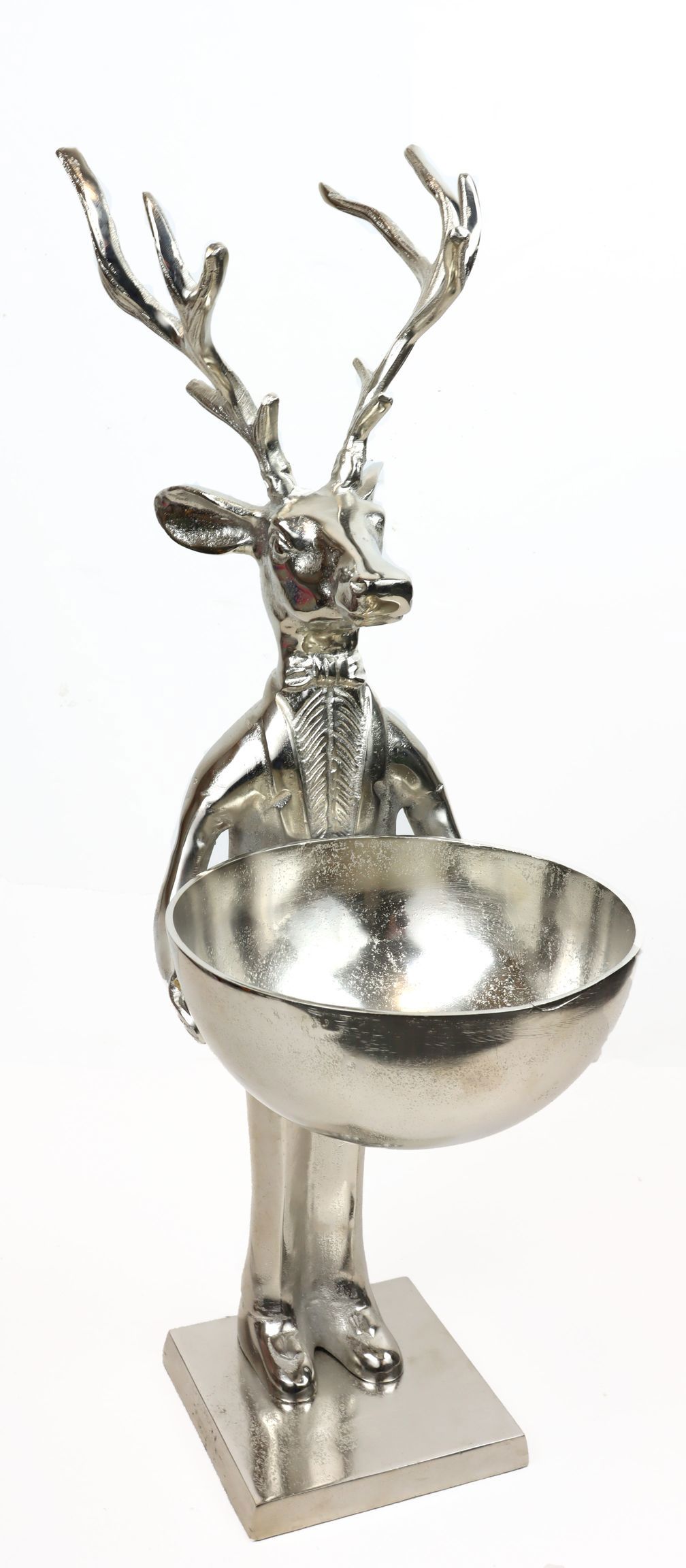 Entdecken Sie den exklusiven Butler "Hirsch", das perfekte Accessoire für Ihren stationären Einzelhandel im Bereich Wohnen und Lifestyle. Mit seiner beeindruckenden Höhe von 67 cm zieht der Butler Hirsch alle Blicke auf sich und sorgt für einen stilvollen Akzent in jeder Umgebung. Gefertigt aus hochwertigem, vernickeltem Aluminium, vereint dieser Butler moderne Eleganz mit rustikalem Charme, was ihn zu einem Highlight in Ihrer Herbst-Winter-Kollektion macht.