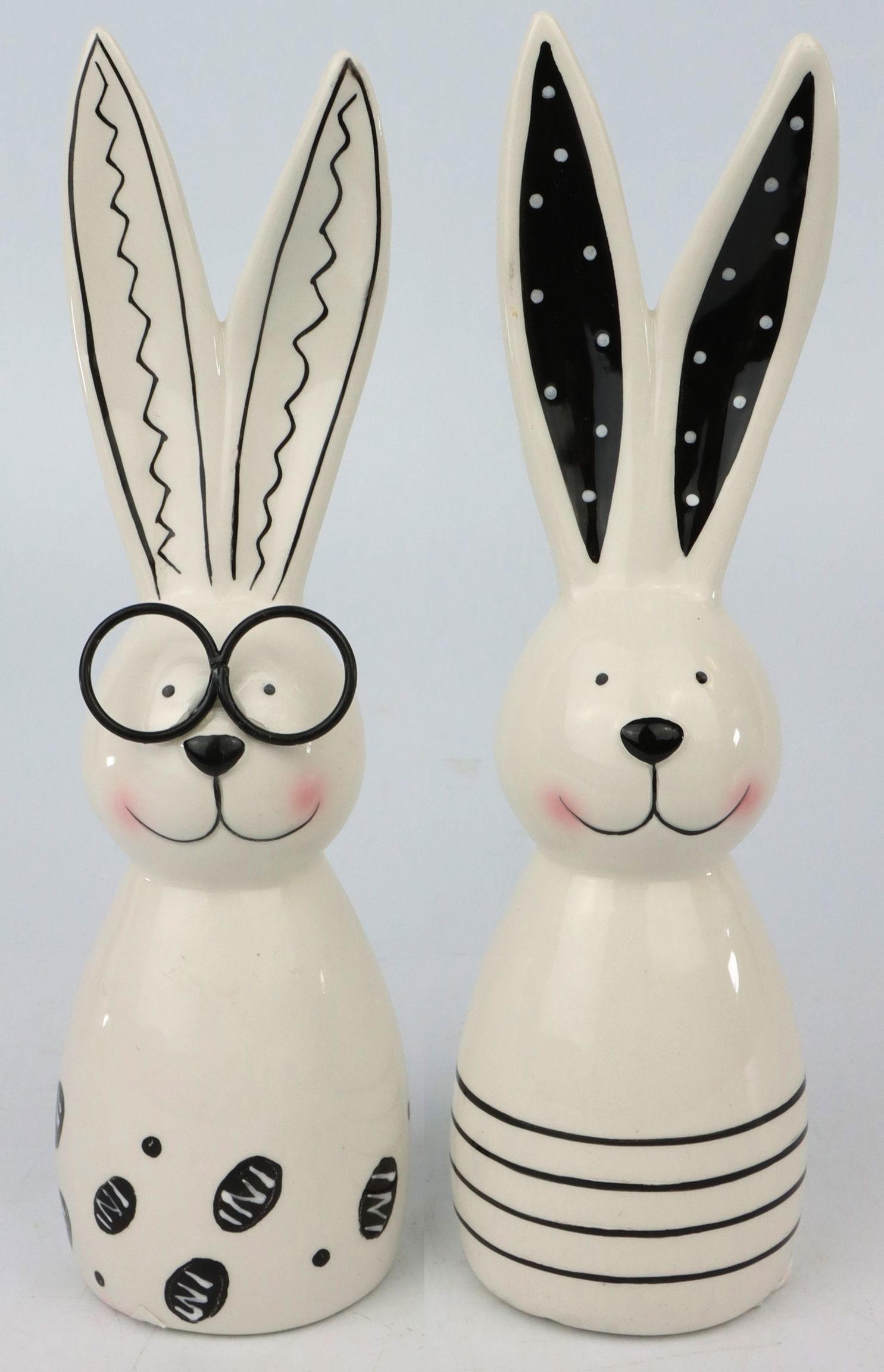 Die Hasen sind aus hochwertiger Keramik gefertigt und bestechen durch ihre sanfte, glatte Oberfläche sowie die geschmackvolle Farbgestaltung in Schwarz-Weiß. Das minimalistische Design passt sowohl zu traditionellen Osterdekorationen als auch zu modernen Lifestyle-Wohnaccessoires. So bieten Sie Ihren Kunden nicht nur ein Produkt, sondern eine attraktive Option, das Osterfest stilvoll zu zelebrieren.