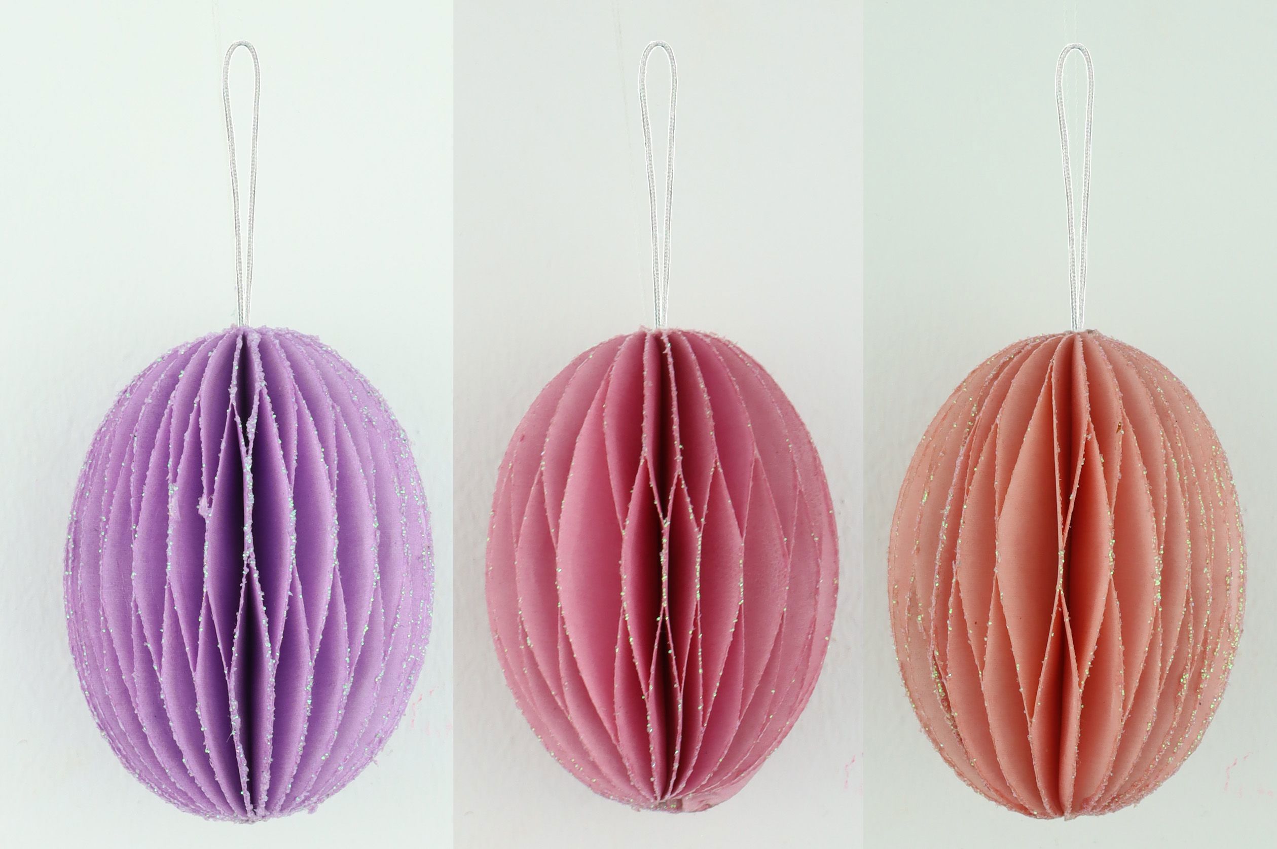 Jedes Papier-Hängeei misst ca. 6 cm und überzeugt durch seine exquisite Honeycomb-Struktur. Diese verleihen den Eiern nicht nur ein ansprechendes, volumetrisches Aussehen, sondern lassen auch vielseitige Einsatzmöglichkeiten zu. Ob am Osterstrauch oder als charmante Fenstergirlande arrangiert – Ihre Kunden werden von der leichten, filigranen Schönheit dieser Hänge-Dekoration begeistert sein. Die zarten Pastelltöne sind voll im Trend und lassen sich hervorragend mit anderen Dekoelementen kombinieren, was Ihre Ausstellungsflächen in frühlingshafte Wohlfühl-Oasen verwandelt.