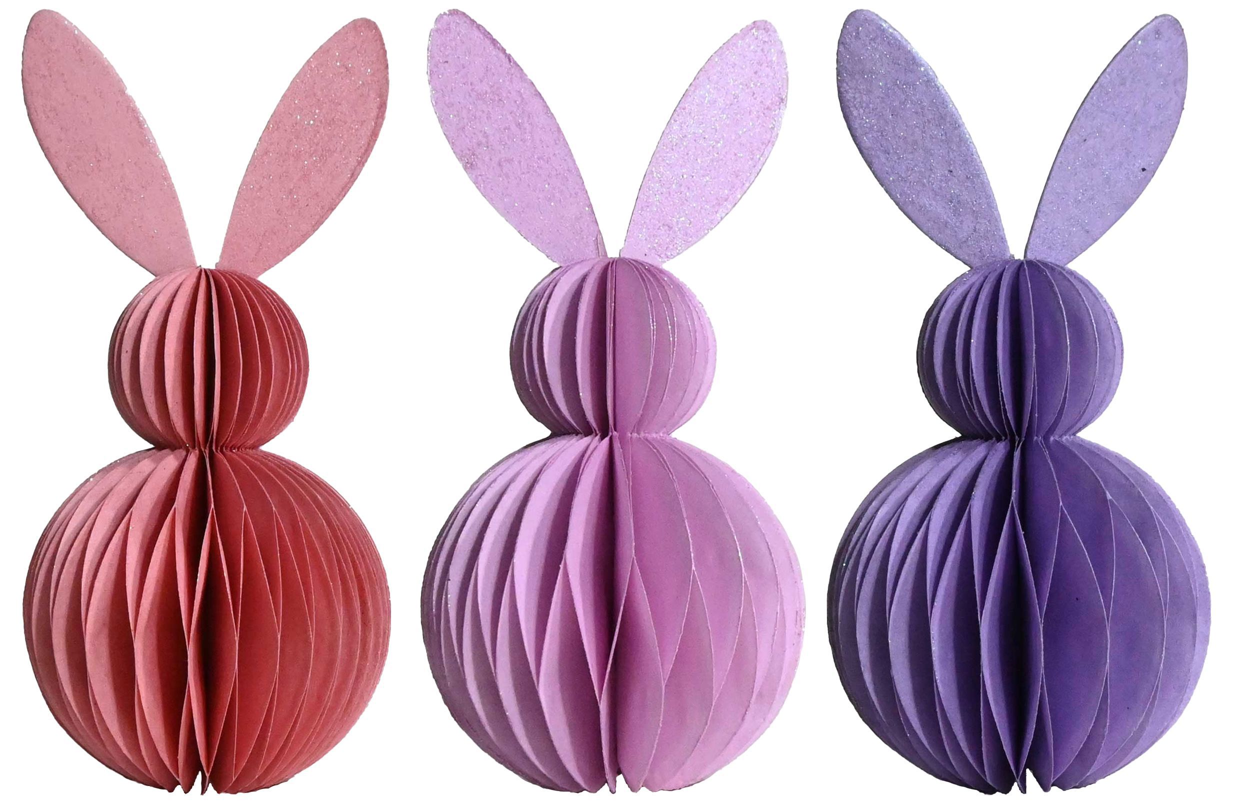 Willkommen im Frühling! Mit unserem Dekohasen-Set "Honeycomb" holen Sie sich frische und fröhliche Ostermomente direkt in Ihr Geschäft. Dieses edle 3-teilige Set besteht aus detailverliebt gestalteten Dekohasen in sanften Lilatönen. Sie sind aus hochwertigem Papier gefertigt und jeweils circa 16 cm groß. Diese elegante Osterdekoration verleiht jedem Raum im Handumdrehen eine einladende und stilvolle Atmosphäre, die Ihre Kunden begeistern wird.