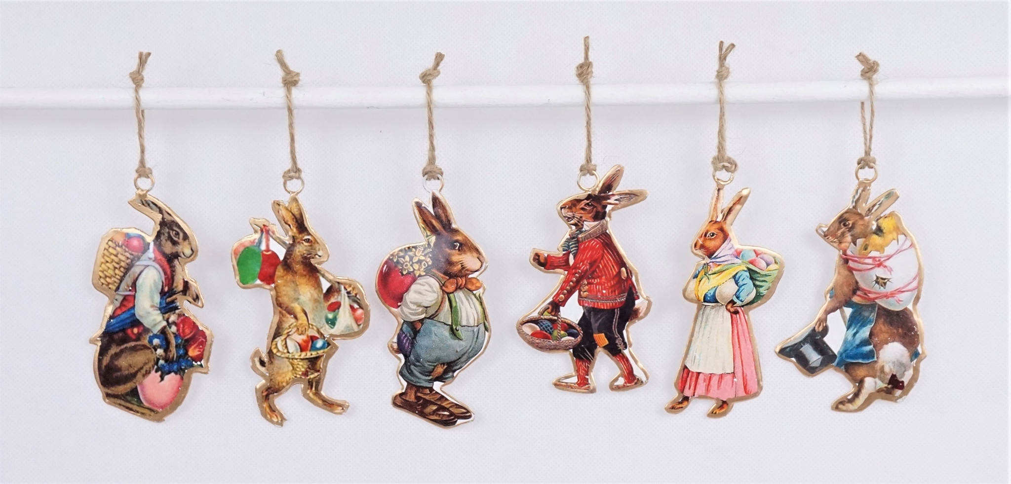 - **Sechsteiliges Set**: Zierhänger mit liebevoll gestalteten Hasenmotiven.