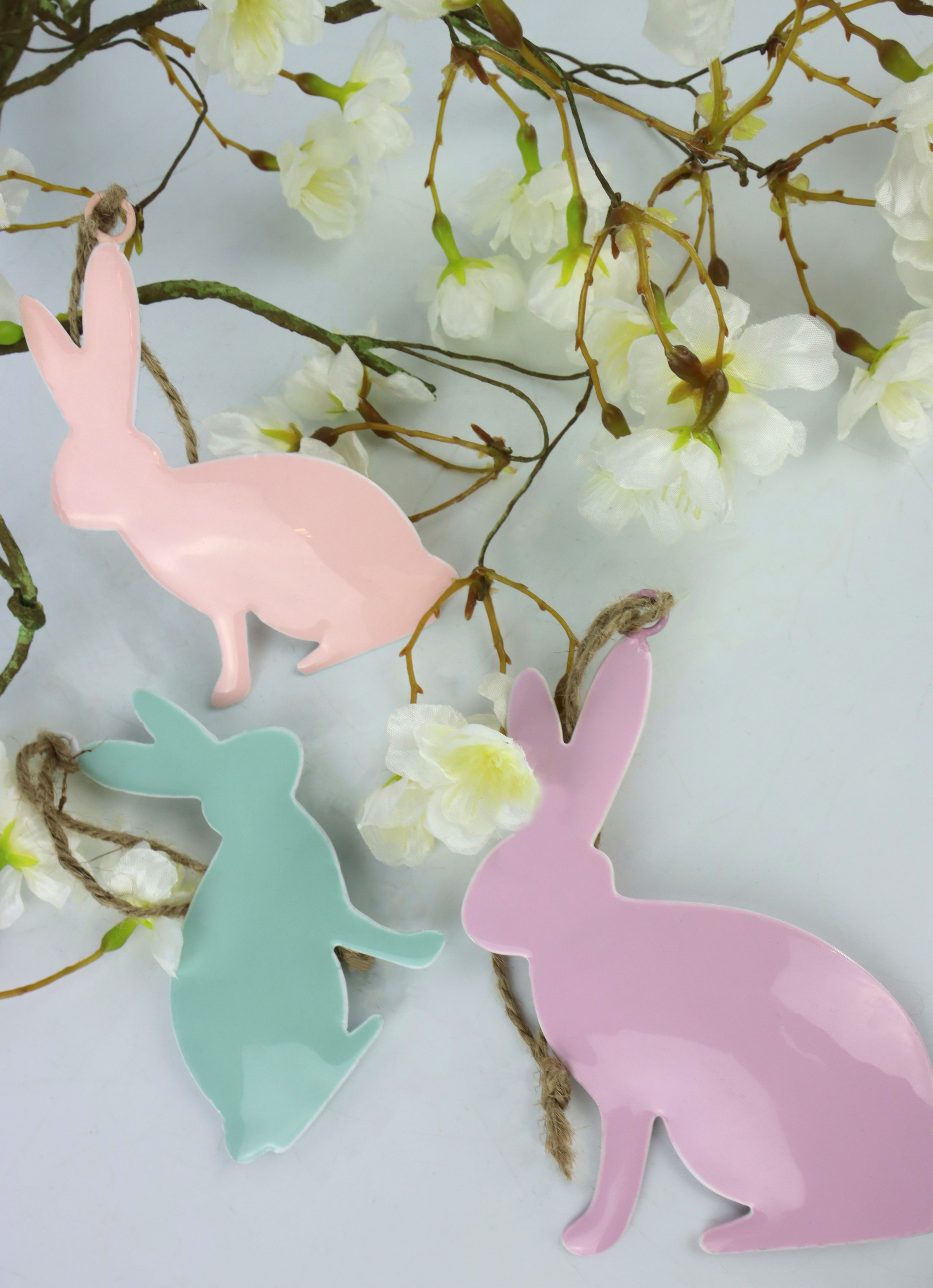 DE### Produktbeschreibung: METALLHÄNGER "HASEN" S/6 - Osterdeko für den Einzelhandel