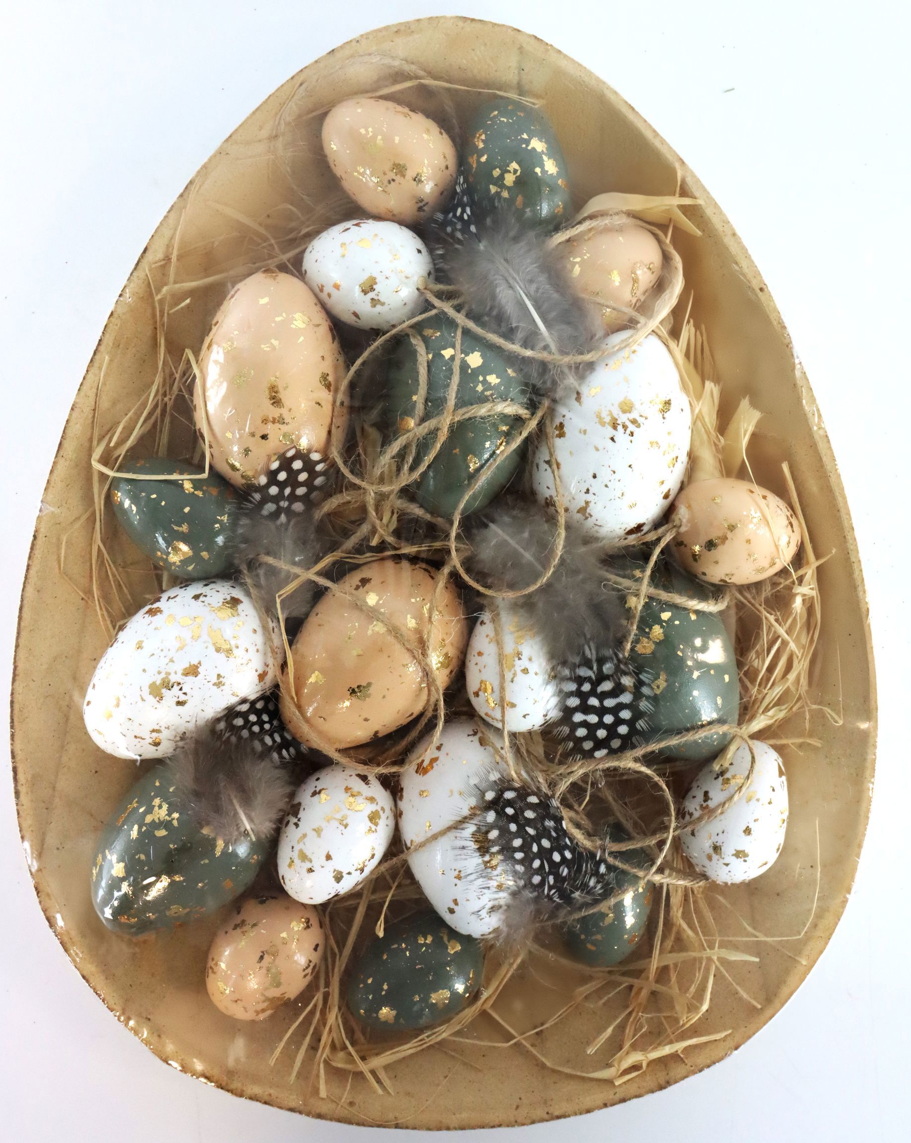 Hervorragend geeignet für den Einzelhandel, spricht die „Schale mit Eiern Natural“ Kunden an, die Wert auf ästhetische, nachhaltige und hochwertige Dekoration legen. Die Kombination aus natürlich anmutenden Materialien und einem zeitlosen Design bietet Flexibilität in der Dekoration und stellt sicher, dass diese Schale auch nach der Ostersaison als stilvolles Wohnaccessoire genutzt werden kann.