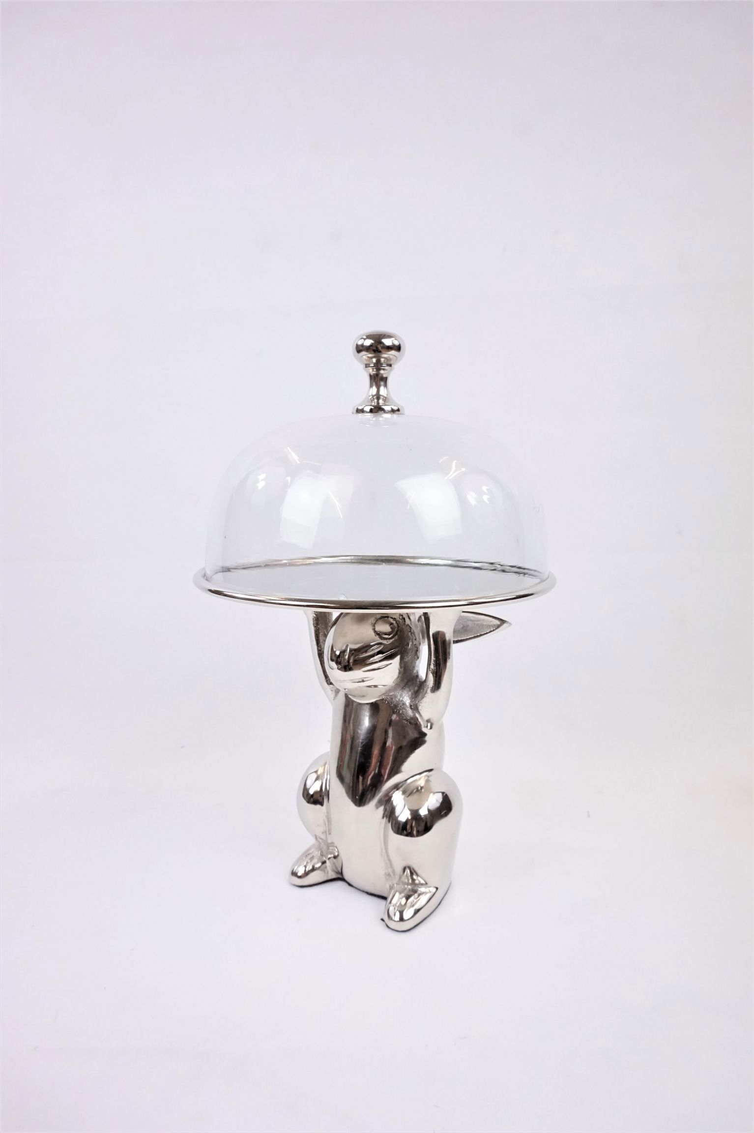 **Produktbeschreibung: Edle Abdeckhaube „Hase“ aus glänzendem Metall für Ostern**