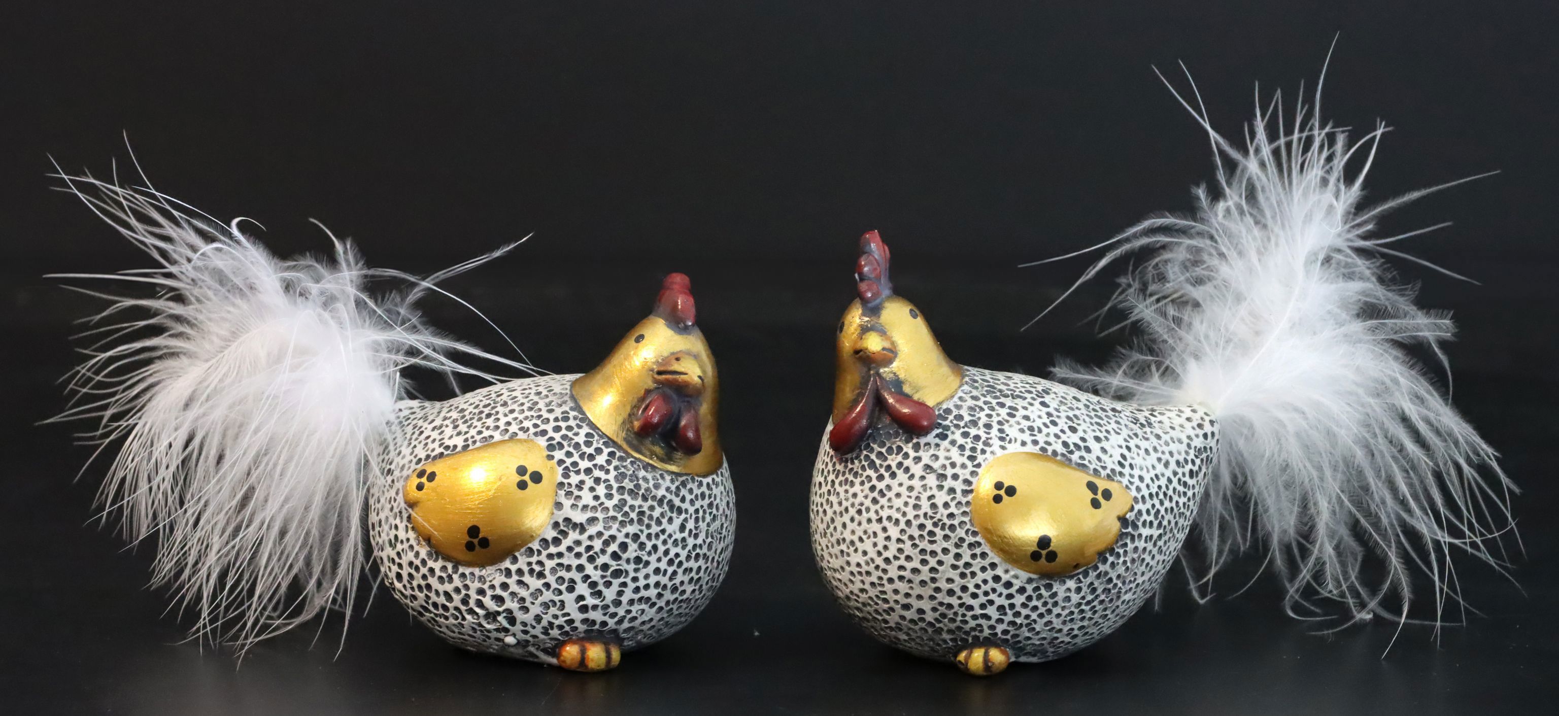 Dank seiner modernen Optik wird das Set aus Hahn und Henne zu einem Blickfang in jedem Geschäft und bietet stationären Händlern die Möglichkeit, sich von der Masse abzuheben. Die detailreiche Ausführung in trendaktuellem Design macht das Set ebenso für Kunden attraktiv, die auf der Suche nach einem frischen, modernen Stil sind.