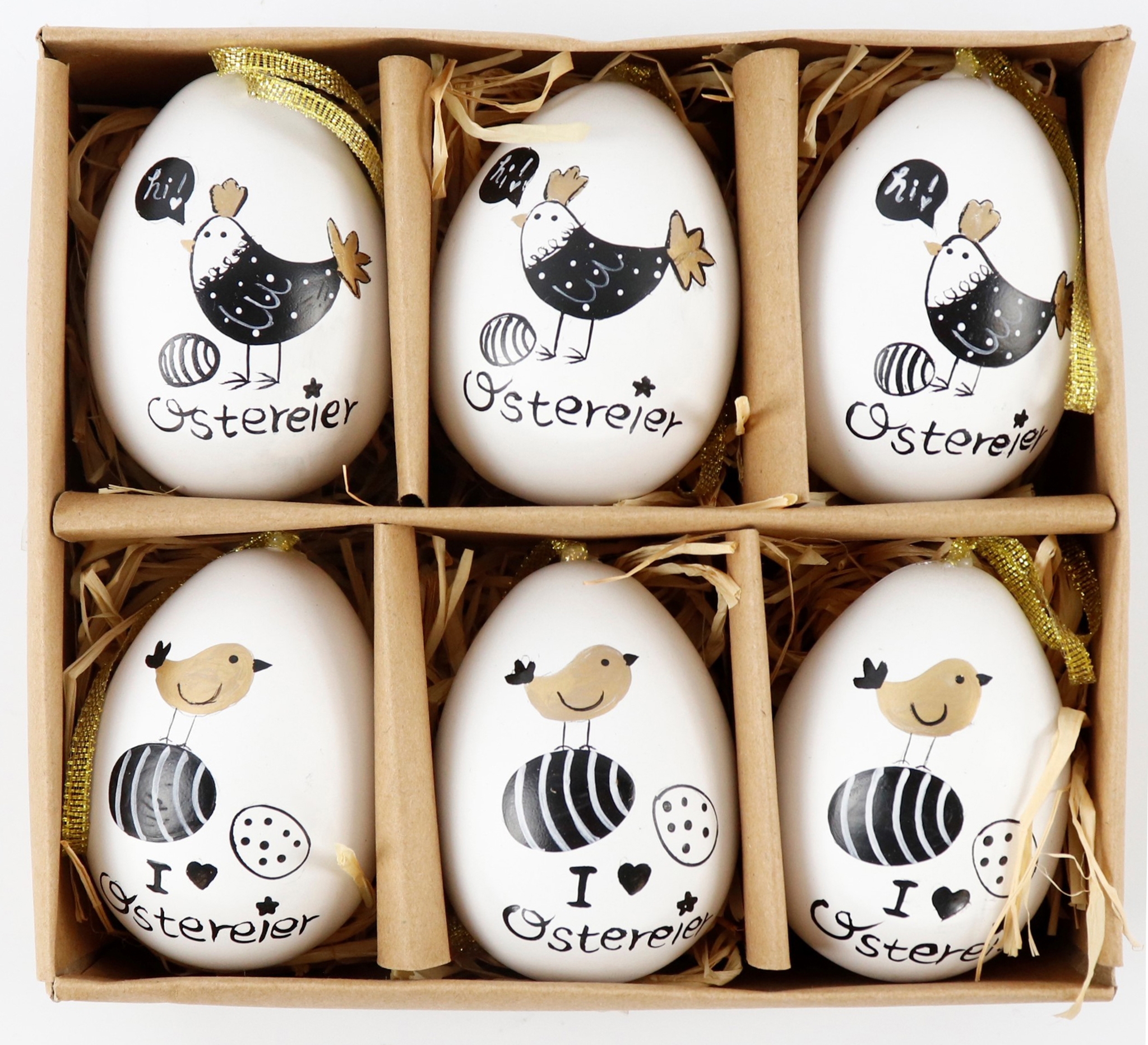 Entdecken Sie unser exklusives 6-teiliges Set "Happy Easter" Hängeeier, das Ihre Osterdekoration auf das nächste Level hebt. Perfekt für den stationären Einzelhandel im Bereich Wohnen und Lifestyle, bringen diese stilvollen Deko-Highlights frischen Wind in Ihre Saisonpräsentation. Die Hängeeier mit einer Größe von ca. 6 cm werden in einer ansprechenden, praktischen Box geliefert, was den unkomplizierten Transport und die ansprechende Präsentation im Laden unterstützt.
