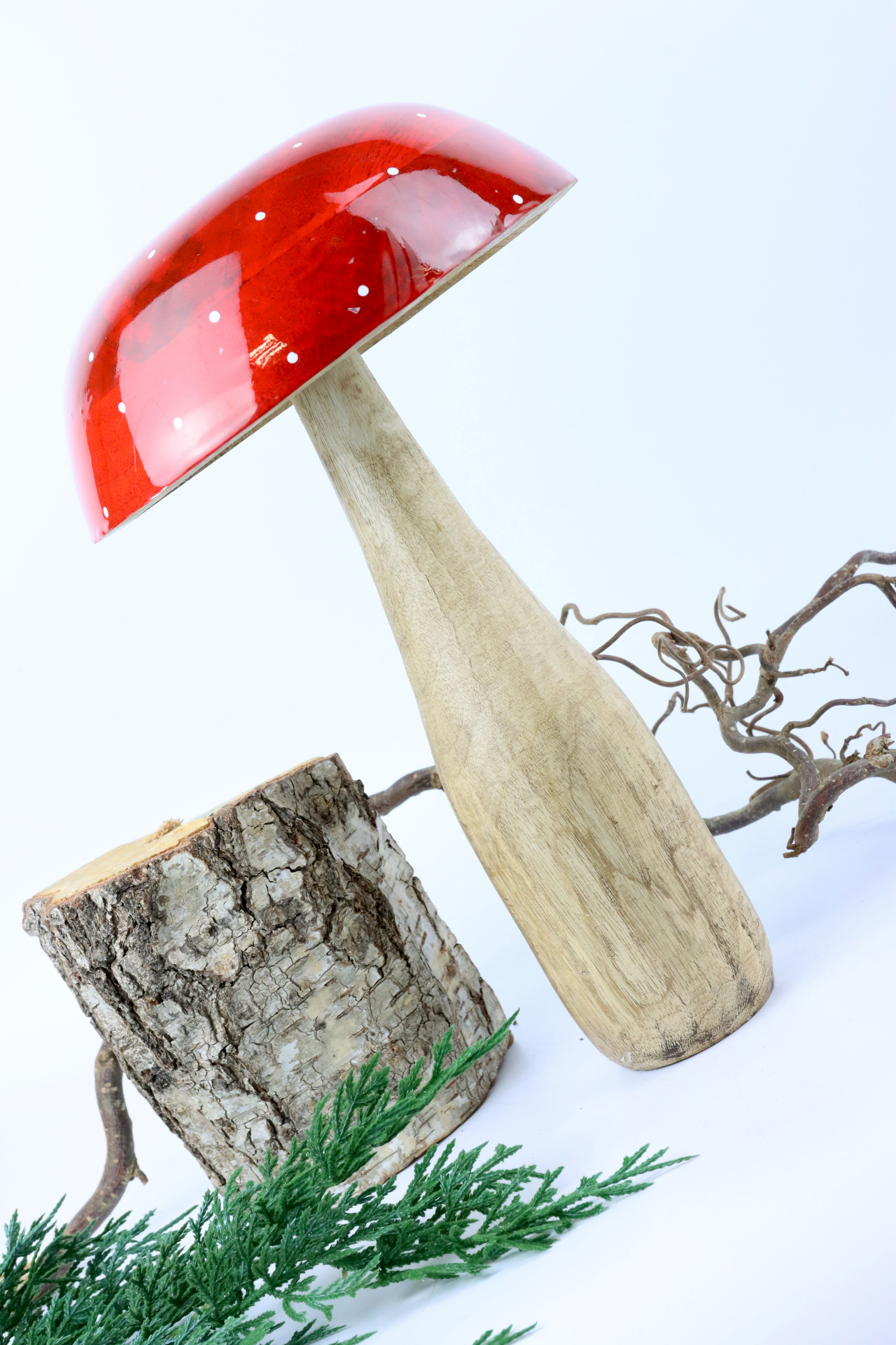 Das Thema "Wohnen und Lifestyle" befindet sich auf einem Allzeithoch und wir verstehen es vollkommen! In dieser rasanten, schnelllebigen Welt sehnen wir uns nach etwas Vertrautem und Angenehmem. Mit unserem einzigartigen Fliegenpilz-Dekoobjekt aus Mangoholz könnten Sie Ihr stationäres Einzelhandelsgeschäft zum Inbegriff von Stil und Luxus machen. Fügen Sie Ihrer Ambientekollektion dieses Szene-Stealing-Deko-Objekt hinzu und demonstrieren Sie Ihrem Publikum, wie die perfekte Mischung aus modernem Design und Traditionalismus aussieht.