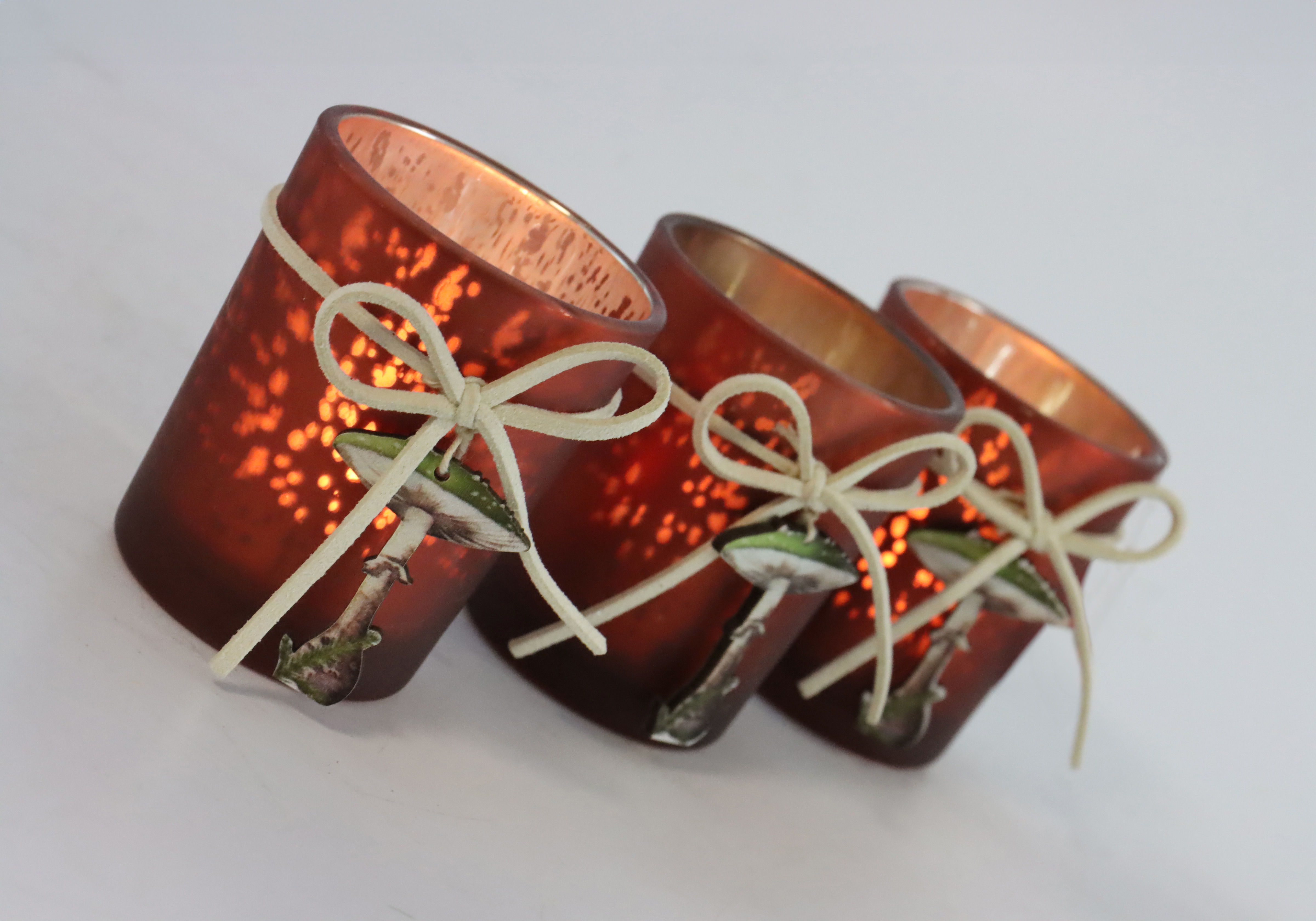 **Produktbeschreibung: Tischlichter "Glückspilz" im 3er Set – Gemütlichkeit für Ihr Zuhause**