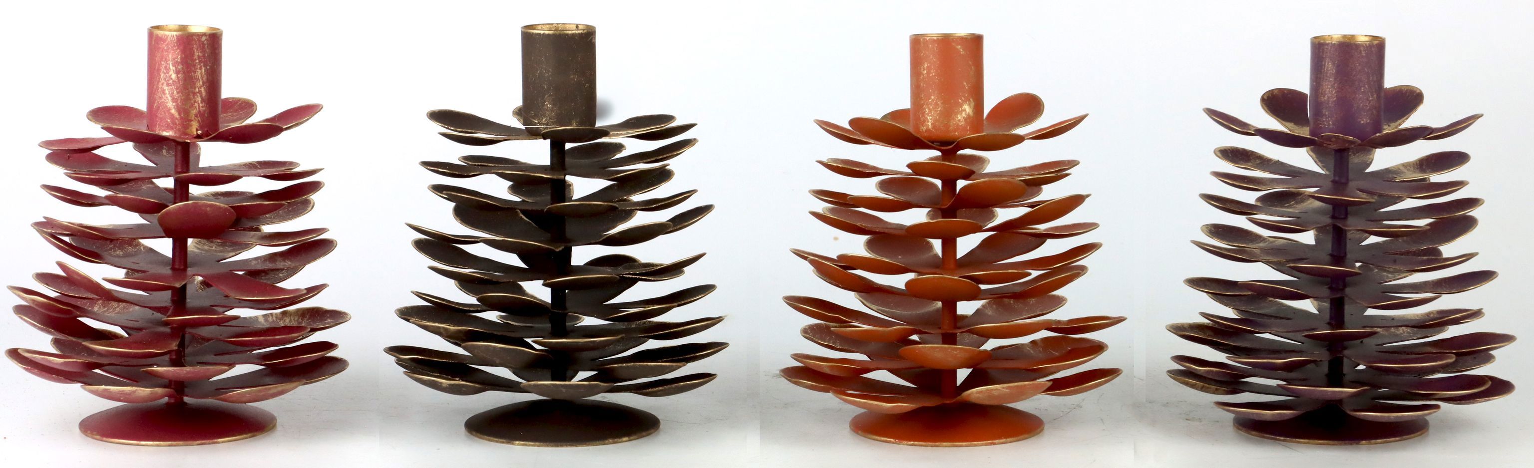 - Vierteiliges Leuchter-Set in stilvollen Brauntönen