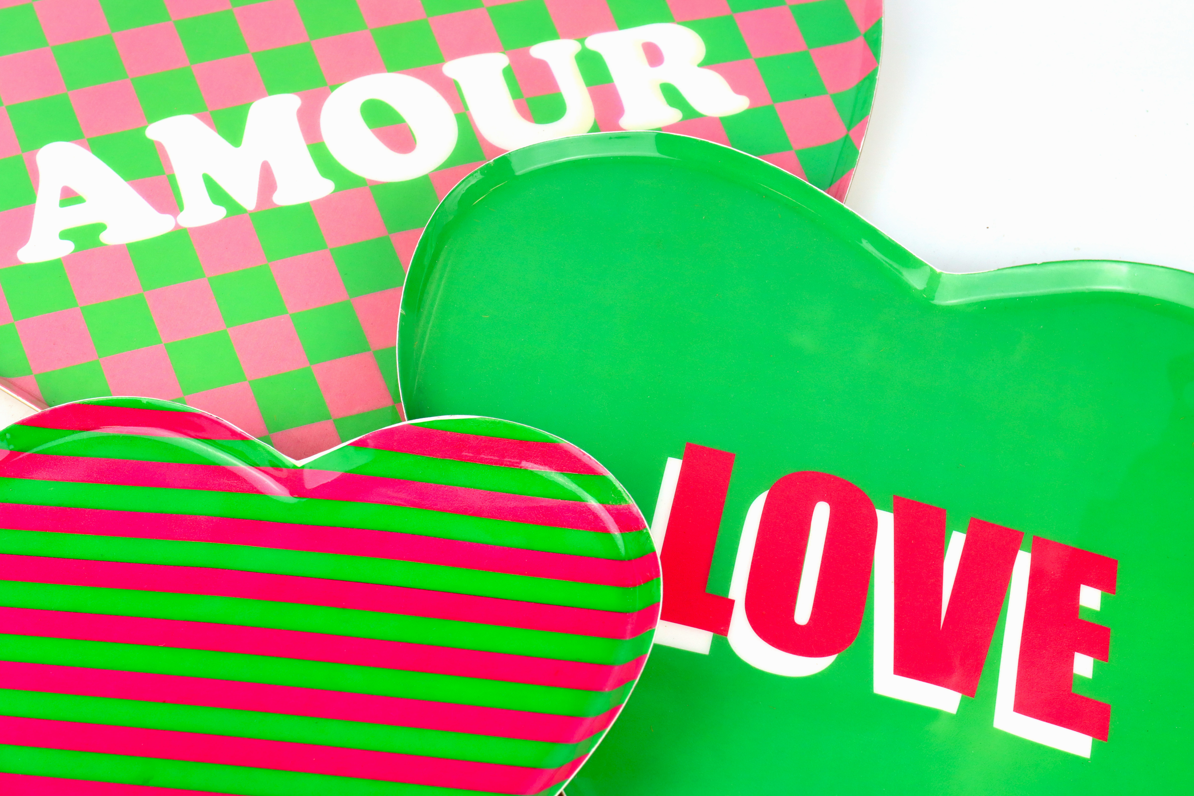 Entdecken Sie unser zauberhaftes Herztablett-Set "Message" im praktischen 3er Pack, das pünktlich zur Frühjahr/Sommer Saison Ihre Räume mit einer Extraportion Charme erfüllt. Diese dekorativen Herztabletts sind die ideale Ergänzung für den stationären Einzelhandel im Bereich Wohnen und Lifestyle. Jedes Metalltablett ist nicht nur ein nützliches Accessoire, sondern auch ein stilvolles Dekorationselement.